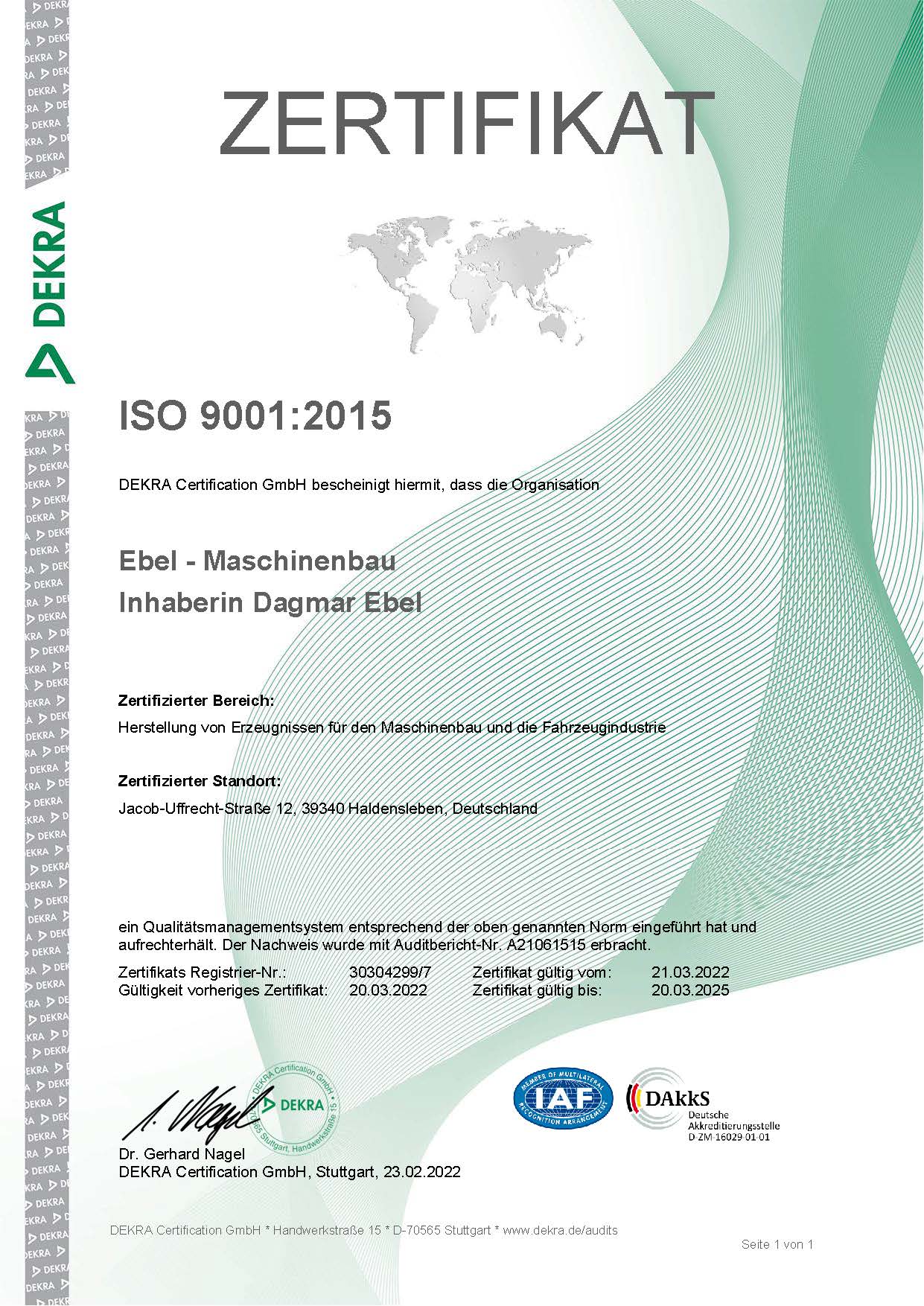 Ebel Maschinenbau ––– Zertifizierungen